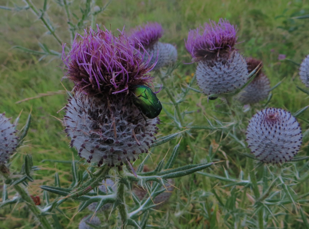 A noter aussi de nombreux chardons remarquables visibles tout l’été dans cette même prairie : à observer absolument avant et pendant la floraison finale, les deux périodes offrant un intérêt certain de beauté pour ces plantes. Ils sont également fréquentés par une multitude d’insectes qui raviraient des accros de la photo.…