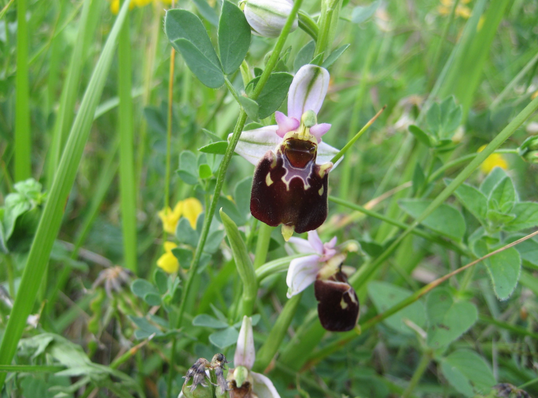 Les photos présentées prouvent que de nombreuses espèces poussent sur le site naturel de la côte de Montreuil, mais aussi principalement pour deux d’entre-elles (orchis pourpre et orchis bouc) sur le bord de la route et dans la prairie derrière le cimetière.